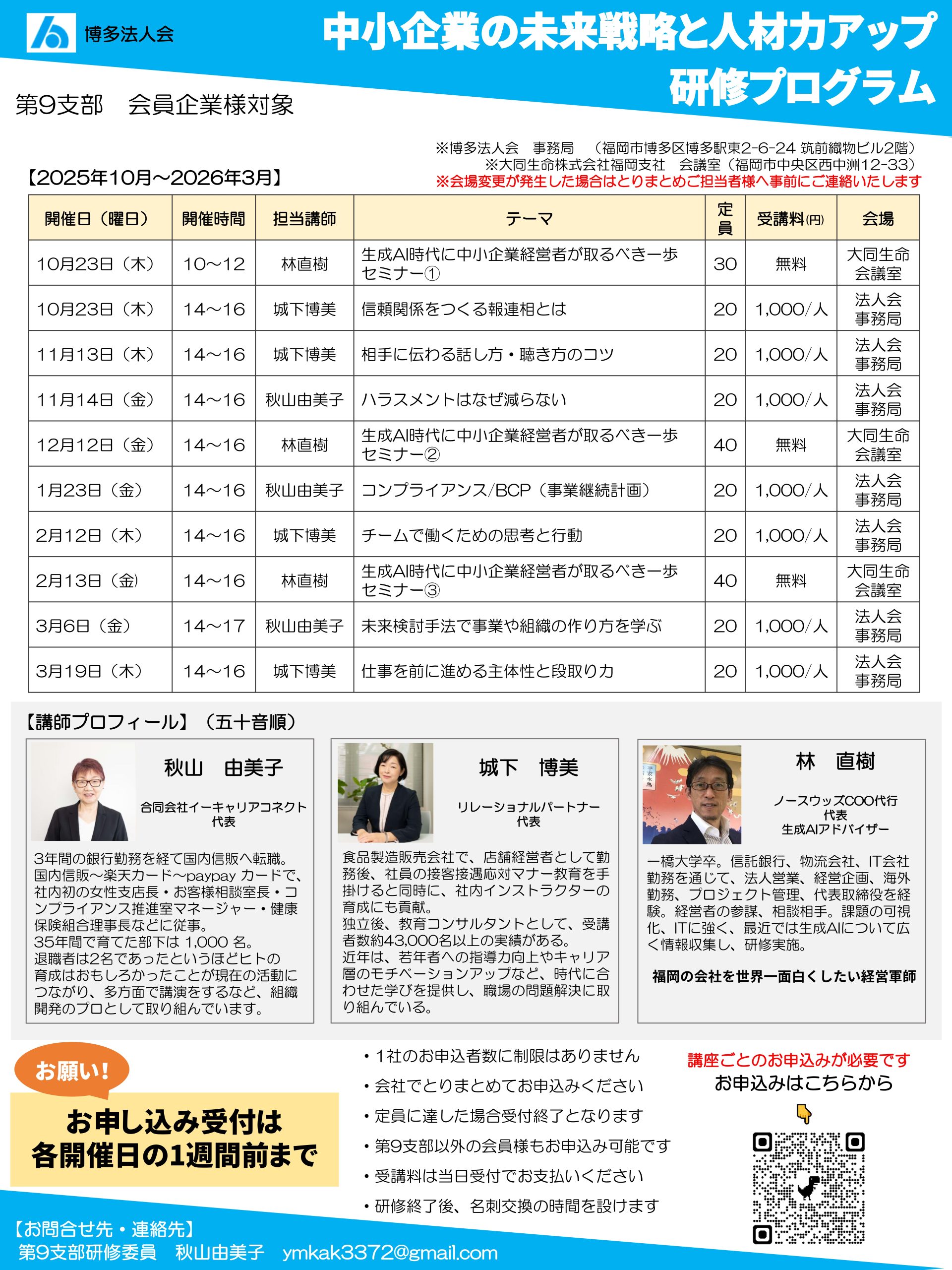 9支部 中小企業の未来戦略と人材力アップ研修 2025.10.23~